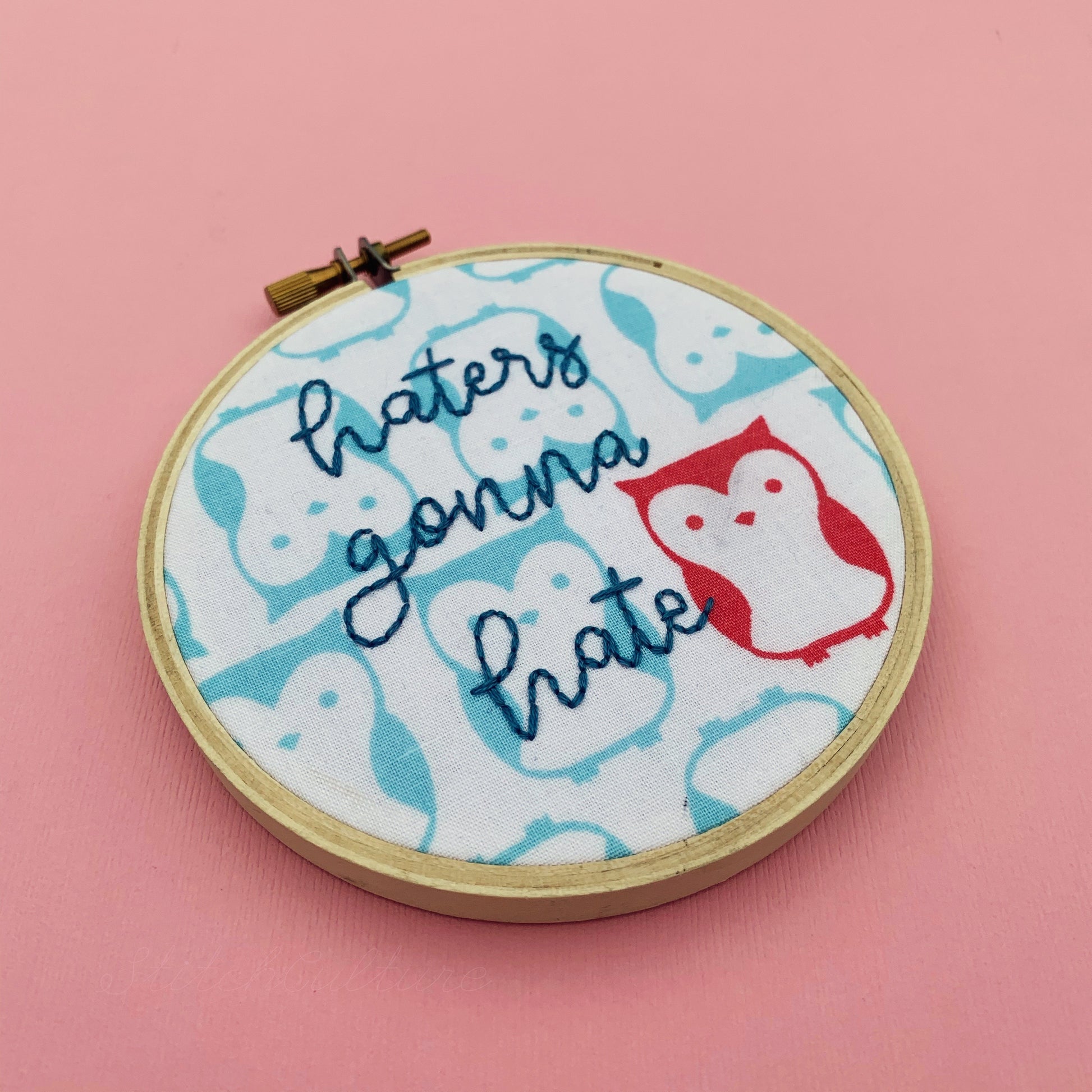 > Hand stitched with cotton embroidery floss on printed cotton fabric