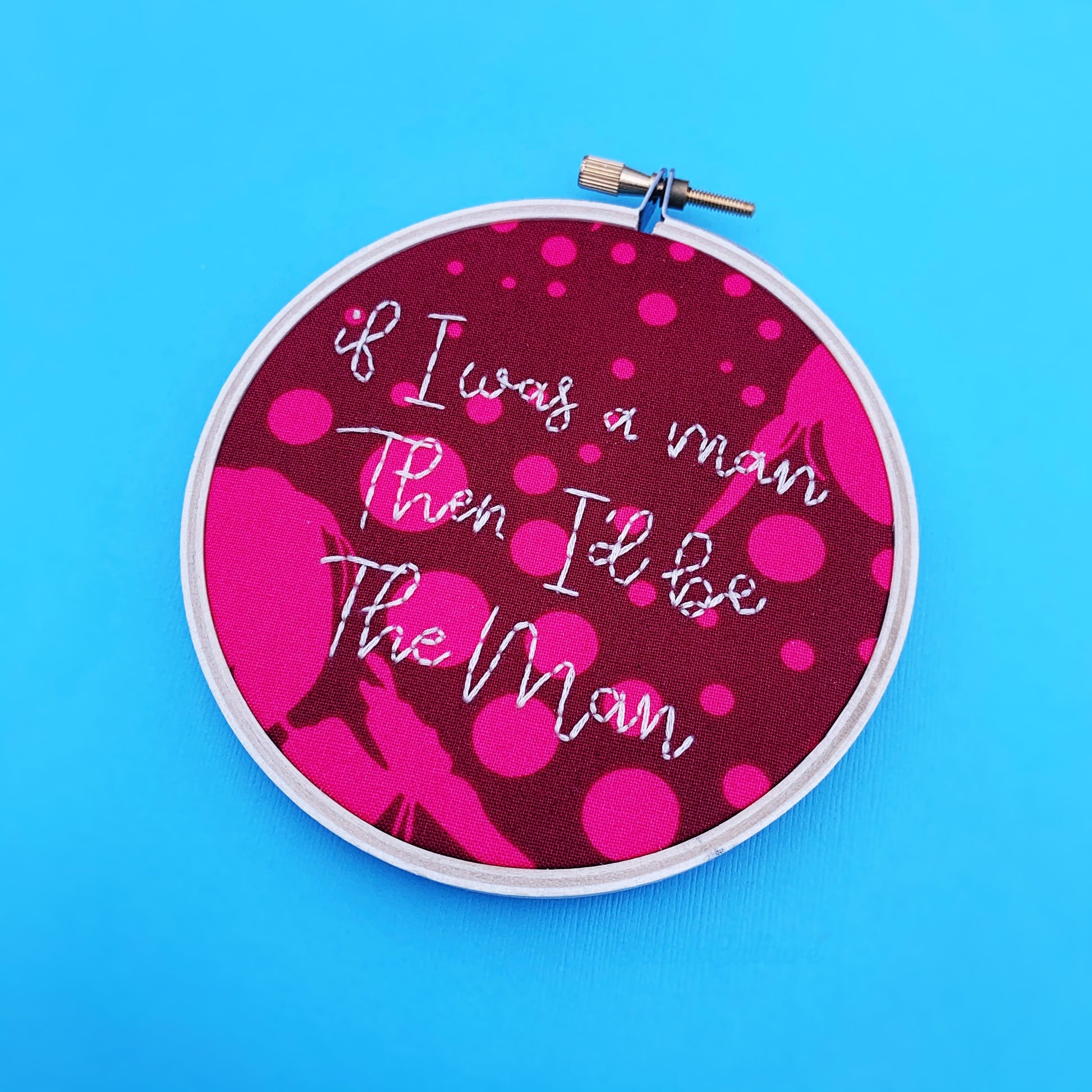 Hand embroidered IF I WAS A MAN, THEN I'D BE THE MAN hoop