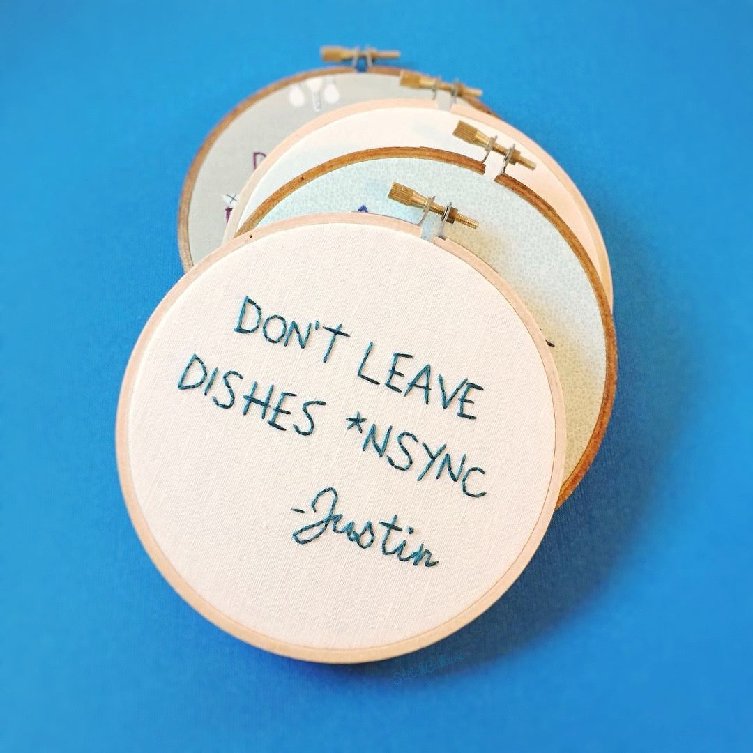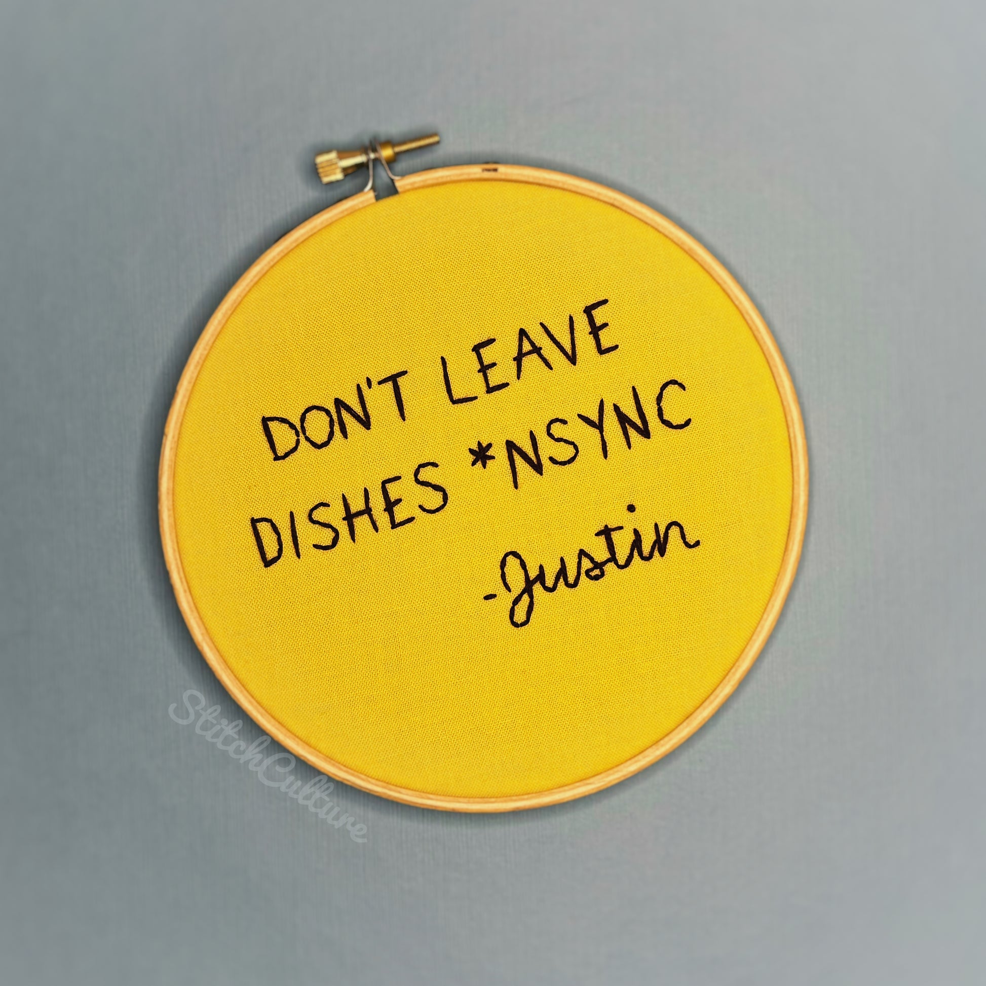 DON'T LEAVE DISHES *NSYNC *the original* / punny embroidery hoop